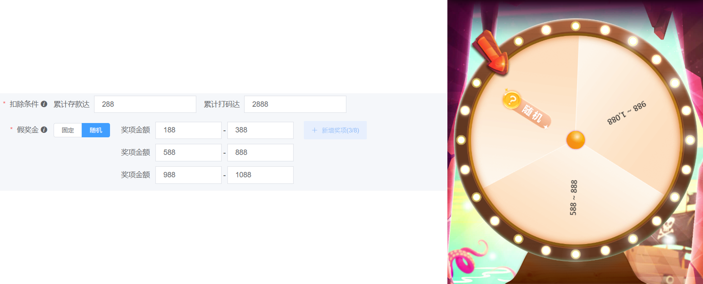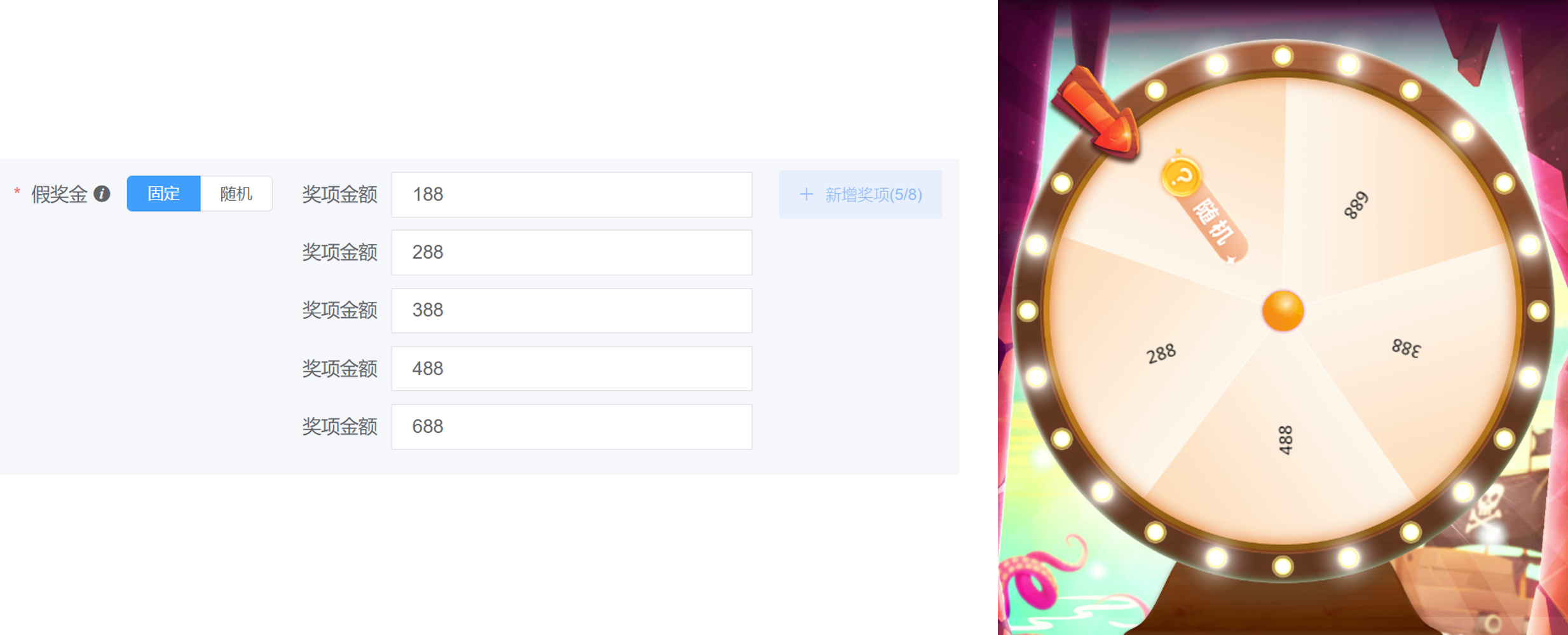 奖项金额:真实发出奖金(配合假奖金设定有固定或随机两种)